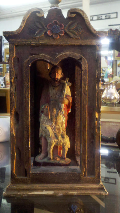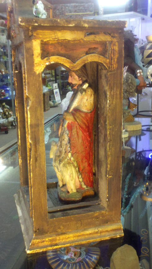 Wonderful New MexicoPrimitive Santos Wood CarvingSantos and Lamb Nicho “Shrine”Approx. Deminsions:16” Tall, 7-1/2” Across x 5-1/2” DeepPrice is $460NM residents %7.375 taxShipping, Packing and Handling Charges:$35 Of course this item can be picked up from our store with no additional shipping charges.Paypal button is for total cost. ($495.00) This must be paid via Paypal before we will ship the item to you. For QUESTIONS or to make an OFFEREmail us at Sales@SilverCityTrading.com
