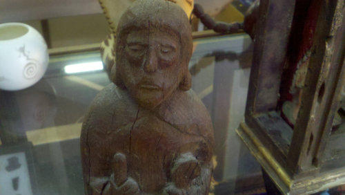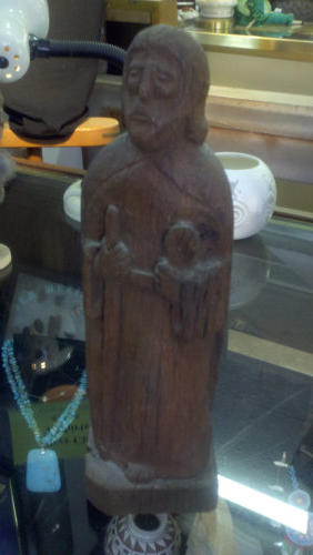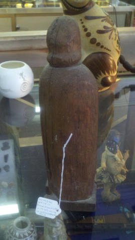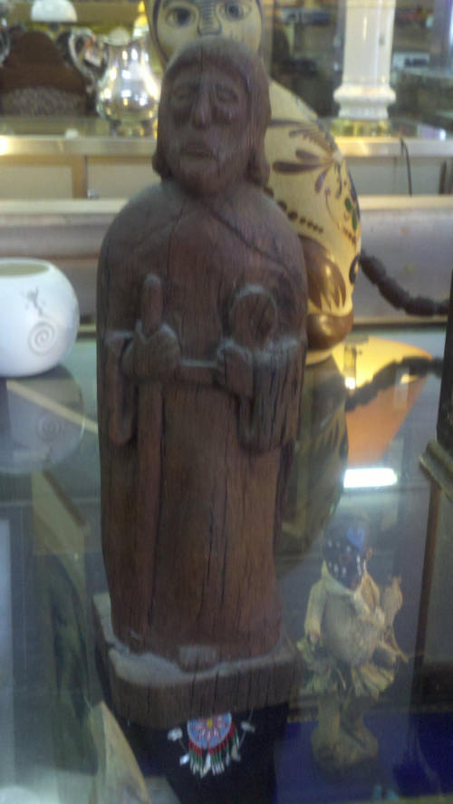 Vintage Santos WoodcarvingCarved in the 1970’s from an Old Telephone Pole by an Artist in The Black Range Mountains in New Mexico.Approximate Size:12” Tall x 3” Wide x 2” DeepPrice is $290NM residents %7.375 taxShipping, Packing and Handling Charges:$35 Of course this item can be picked up from our store with no additional shipping charges.Paypal button is for total cost. ($325.00) This must be paid via Paypal before we will ship the item to you.For QUESTIONS or to make an OFFEREmail us at Sales@SilverCityTrading.com