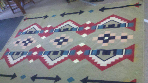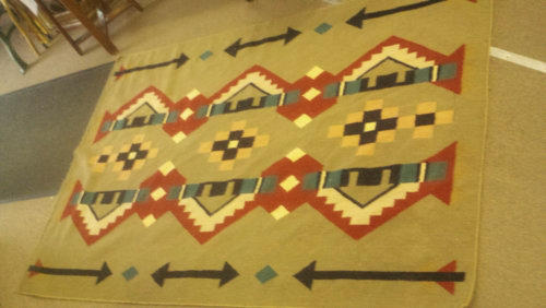 Vintage Navajo RugGenuine and Amazing Navajo TextileVegetable Dyes were used for coloring.Approximately made in the 1950’sIt is in very good condition for it’s age.we were having a little problem trying to get the correct color with our camera. It is a “tan” color as shown in the second image. But the whites are very white as seen in the first image. In person it is a gorgeous tan color. The reds and blues are vivid!APPROX. SIZE:5 ft x 7 ftPrice is $595.00You may make us an offer also!NM residents %7.375 taxPlease email us and we will invoice you through PayPal.Shipping, Packing and Handling Charges:$10 Plus Actual Shipping and Insurance Charges to your destination. Of course this item can be picked up from our store with no additional shipping charges.Paypal button is for Item cost only.If shipping is desired then an additional invoice will be emailed for the actual shipping costs. This must be paid via Paypal before we will ship the item to you. For QUESTIONS or to make an OFFEREmail us at Sales@SilverCityTrading.com