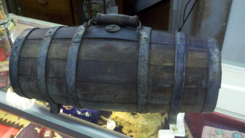 Antique Wooden CaskSingle Bale Merchantman or Navel Rum, Grog or Water Barrel, Cask or KegCirca - 1850’s thru 1910These casks were also found hanging under Civil War Union horse drawn field ambulances. Handcrafted with oak stave and 6 galvanized metal bands to prevent rusting in salt water. It has a working brass bunghole and spigot. there is some age shrinkage of the oak staves. It is a sound keg. Price is $275.00You may make us an offer also!NM residents %7.375 taxIf you want to purchase please email us and we will invoice you through PayPal. You then will have the option to buy or not.Shipping, Packing and Handling Charges:$10 Plus Actual Shipping and Insurance Charges to your destination. Of course this item can be picked up from our store with no additional shipping charges.Paypal button is for Item cost only.If shipping is desired then an additional invoice will be emailed for the actual shipping costs. This must be paid via Paypal before we will ship the item to you. For QUESTIONS or to make an OFFEREmail us at Sales@SilverCityTrading.com